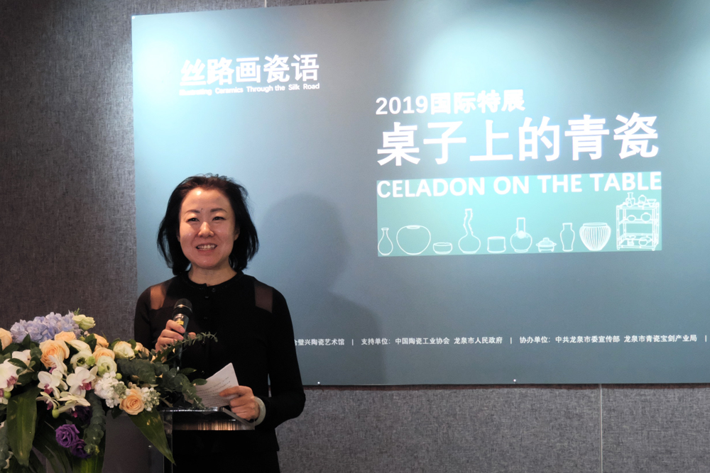 合璧兴陶瓷艺术馆负责人翁利女士致开幕辞