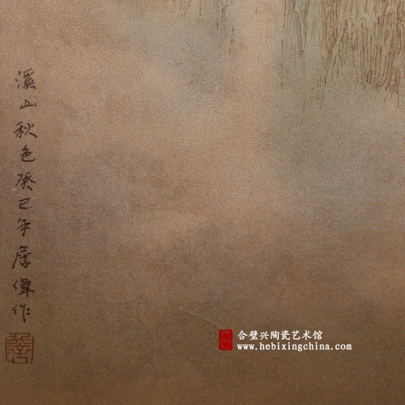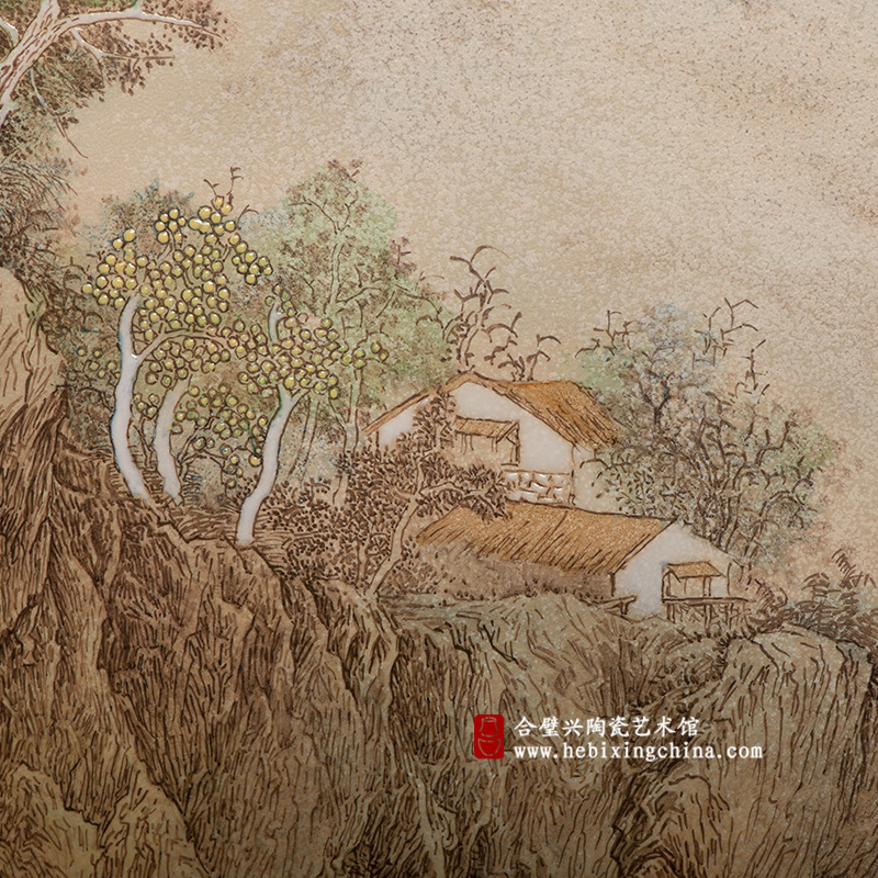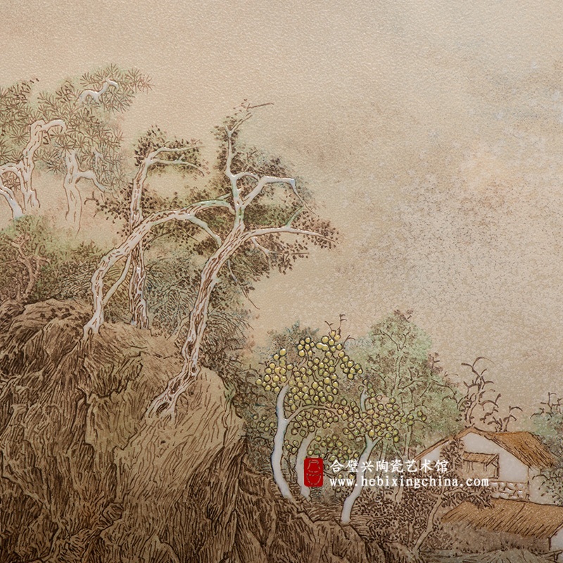 虽然这只是山中的一隅小景,却被作者以潇洒中见细腻的笔法和变化丰富的釉色表现的精彩动人。玻璃白的运用可说是作品中的高光,把观者的视线引导至画面中最精彩之处。