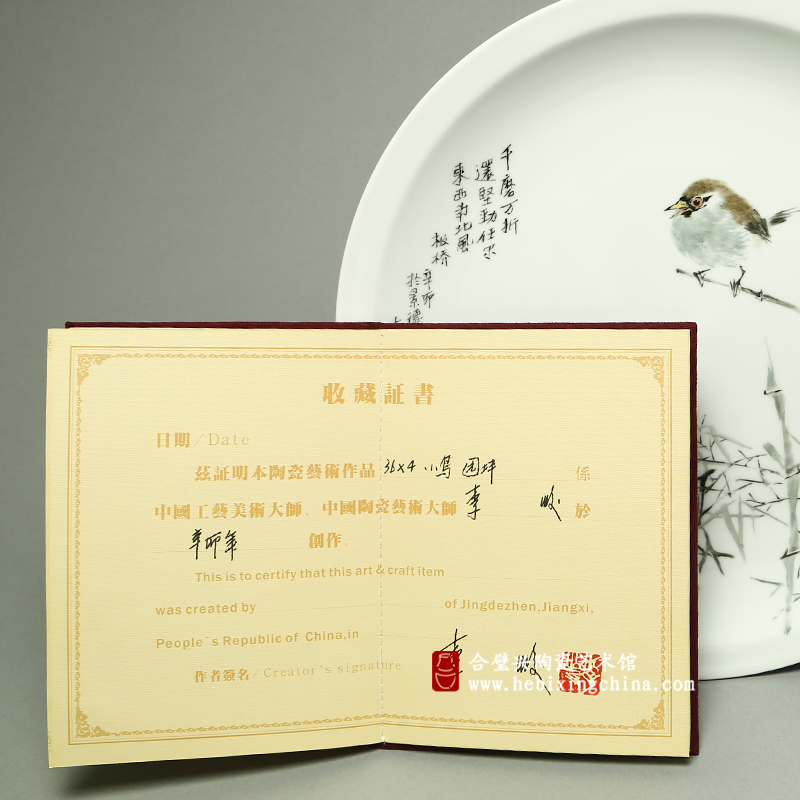 李峻老师的墨竹横斜参差,竹叶如剑,笔法精到而构图奇巧,颇有板桥先生遗风。而在高低错落的修竹上再加一只圆胖的雀儿,虽没有华丽的羽毛,却是整件作品的焦点所在。