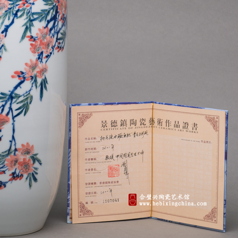 “西塞山前白鹭飞,桃花流水鳜鱼肥。”刘升辉老师用青花五彩巧妙的把唐人张志和的名句再现于雪白的瓷胎之上。