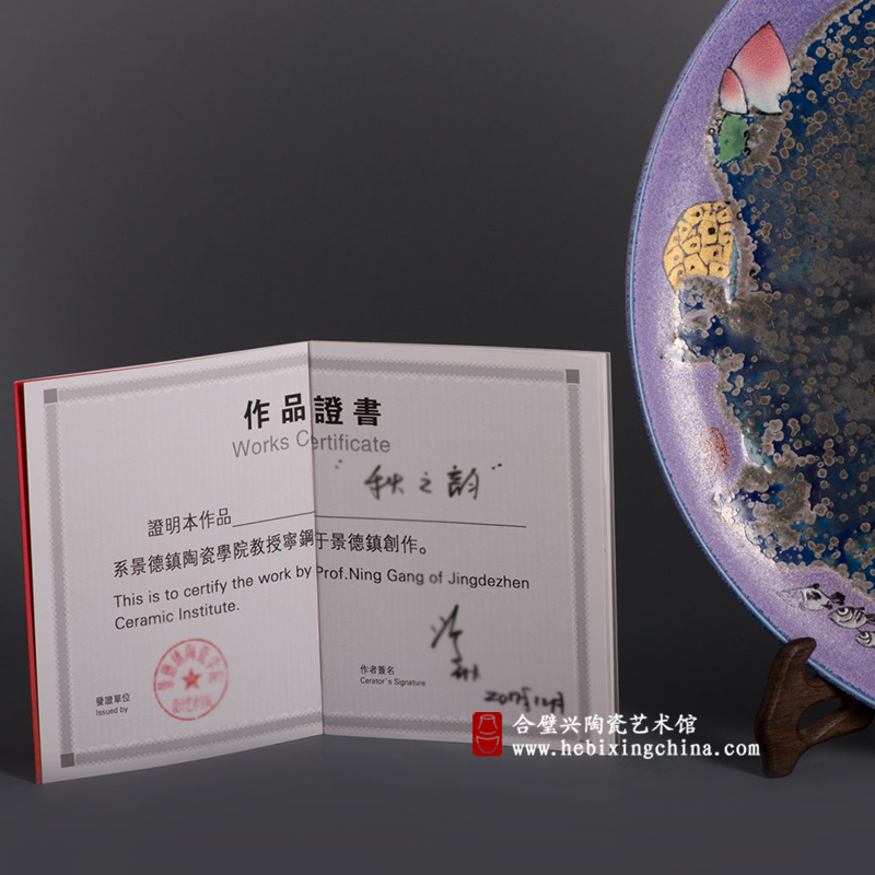 柔美的淡紫,优雅的蓝与变换莫测的银灰,多种颜色釉层层递进渲染出秋日荷塘的美丽。
