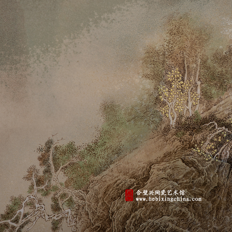 詹伟教授将传统青绿山水中的标志性元素在作品中做了创新性的重构,并加入了现代陶瓷装饰和绘画的技法,让作品呈现出兼具传统韵味和个人色彩的独特风格。
