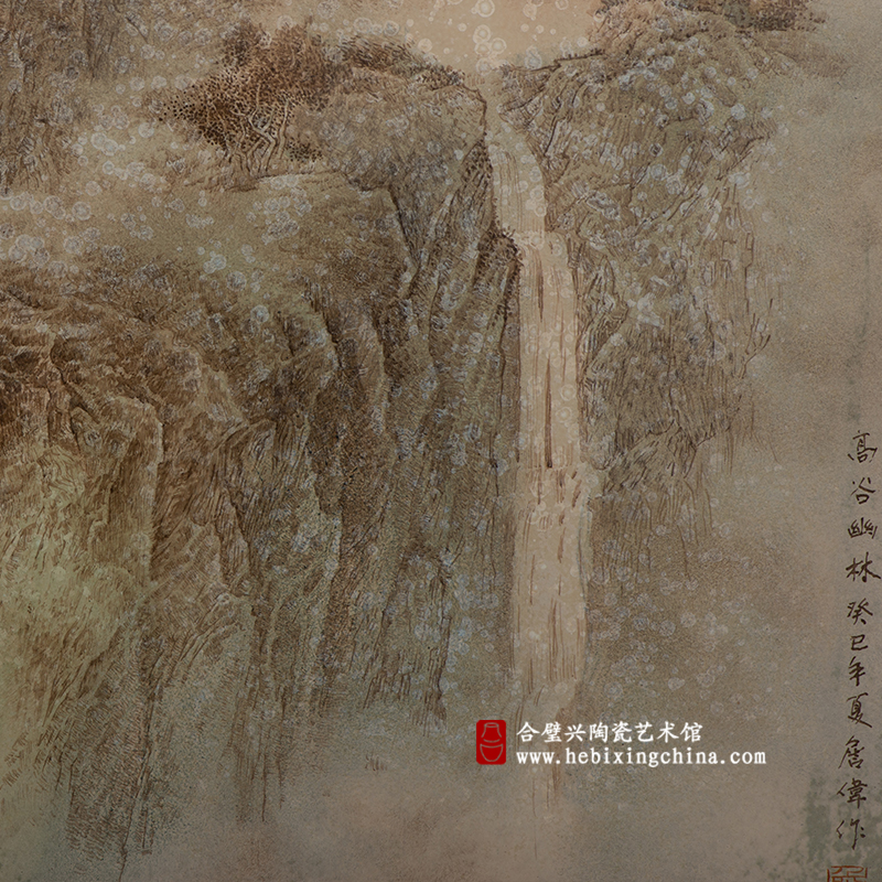 2013年,中国嘉德秋拍,《高谷幽林》综合装饰瓷板,成交价126500元