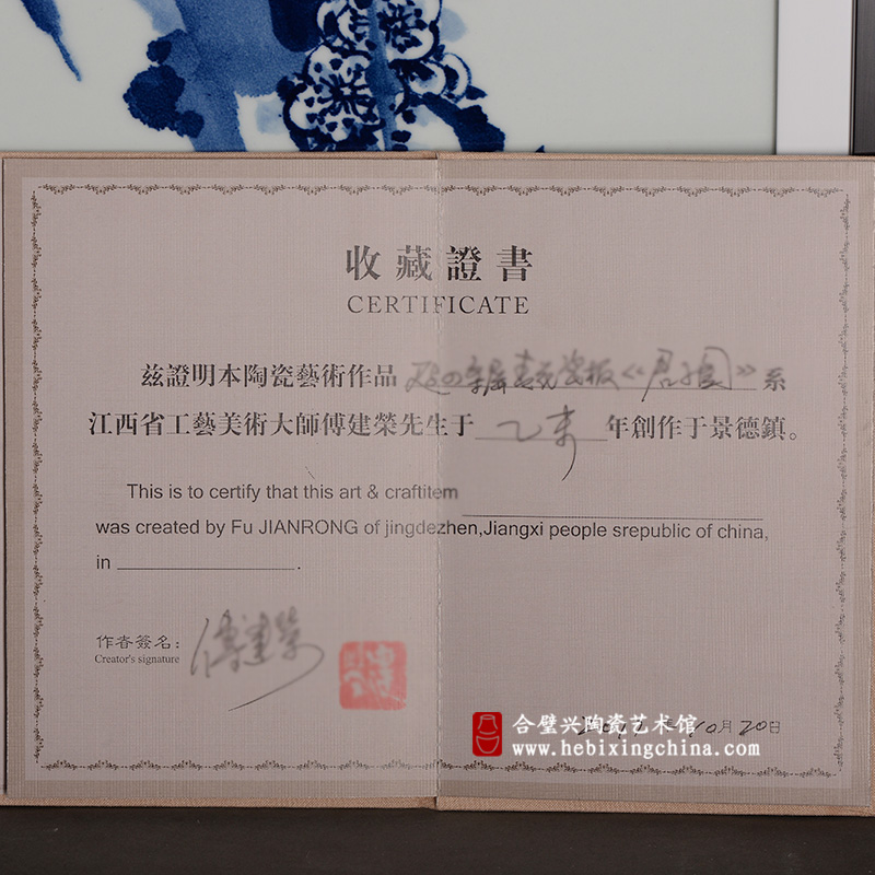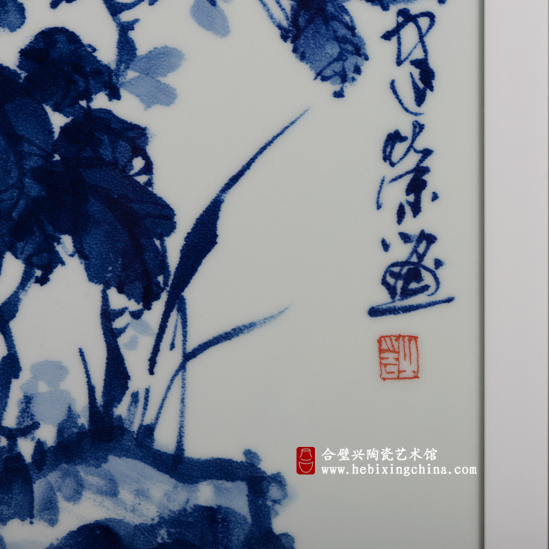 春兰、夏竹、秋菊、冬梅四君子的形象自古便是人们最喜闻乐见的题材。傅建荣老师以他独有的空、灵、淡、逸的创作风格用青花为墨,将四君子勾画的各具风姿。