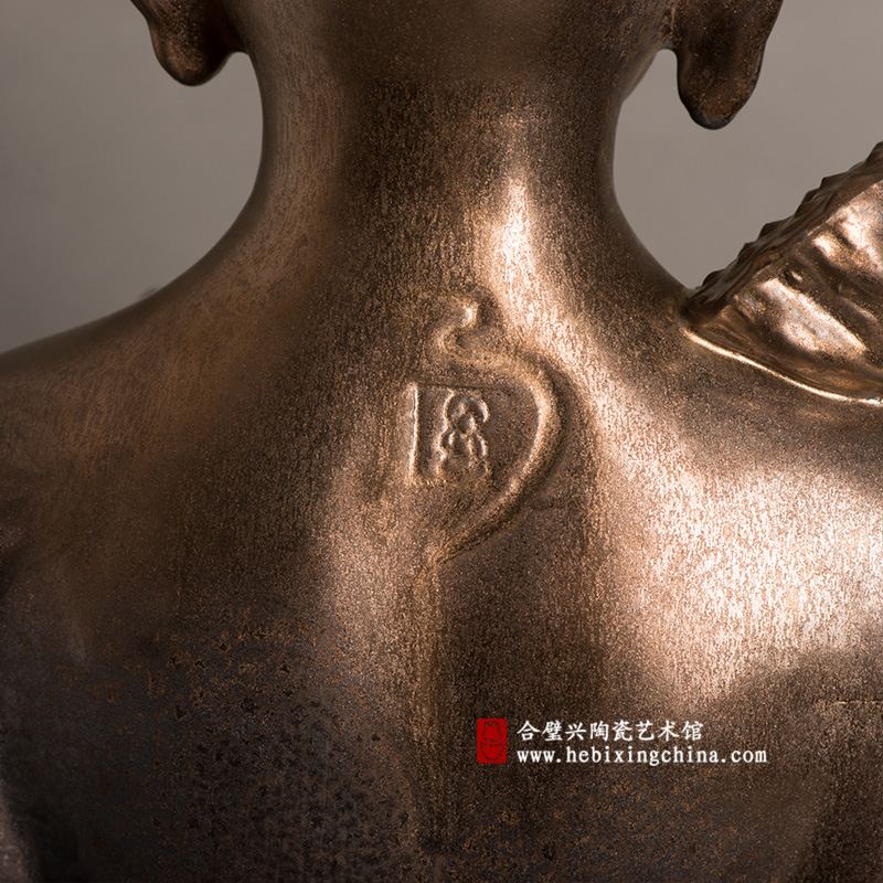 细腻的铜釉为作品镀上了一层隐隐的宝光,让它彷如在寺庙中静立了千年的佛像,肃穆而庄严,看尽人世繁华。