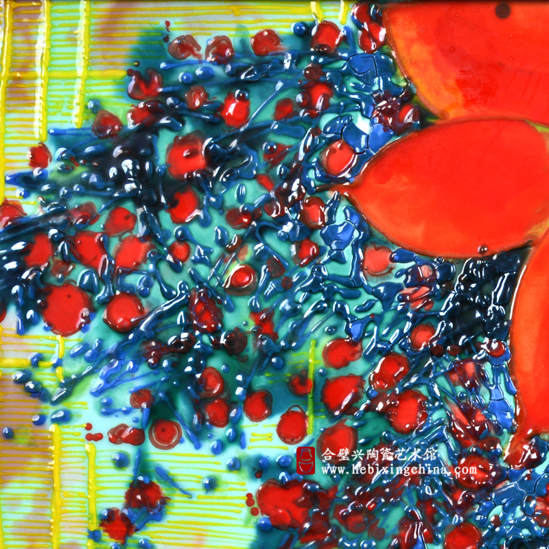 宁钢教授在作品中把画与瓷有机的结合在了一起,油画式的渲染手法与版画般的锋利线条,让作品有了饱满的艺术张力和强烈的装饰效果,洛阳三彩的艳、亮、透和陶瓷材质独特的光泽和质感让作品散发出愈发独特的魅力。
