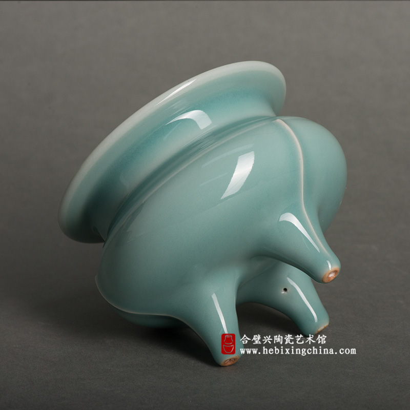 远远观之,仿佛故宫博物院珍藏的宋代龙泉窑青釉鬲式三足炉摆在眼前,仔细观察会发现每一处细节里都饱含着周华的个性与态度。