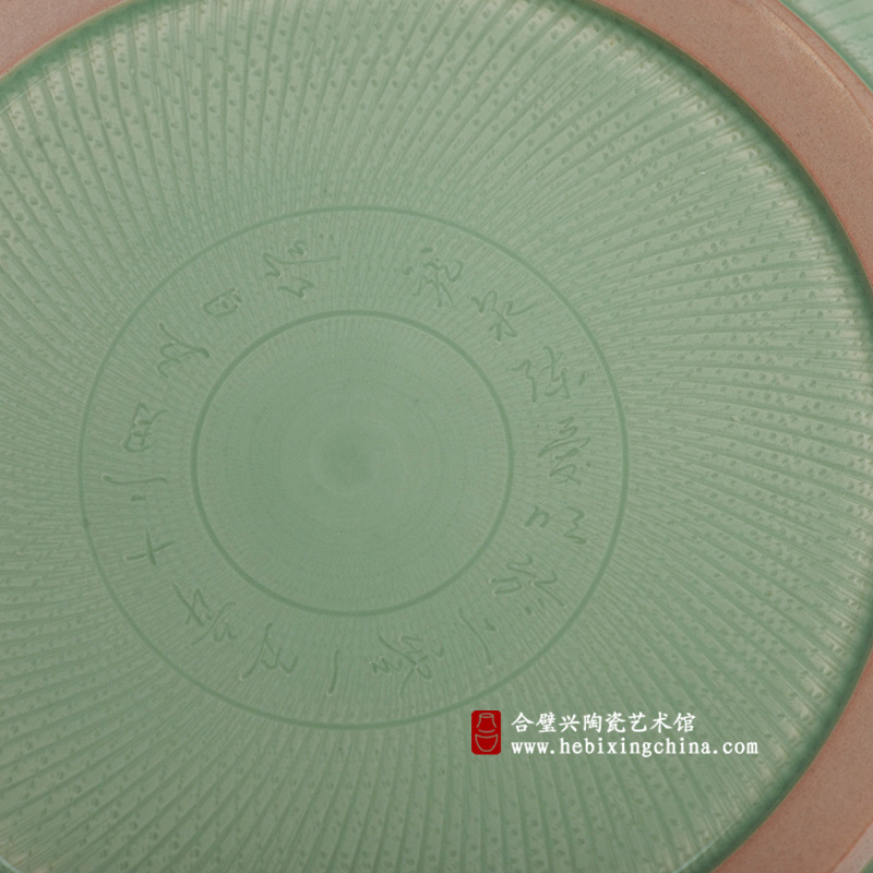 简单利落的线条,洗练而讲究的刀法,一朵盛开的牡丹便跃然盘上,潇洒俊逸中透出幽幽的古意,仿佛是千年前耀州窑的北地牡丹在龙泉的细雨中再次开放。