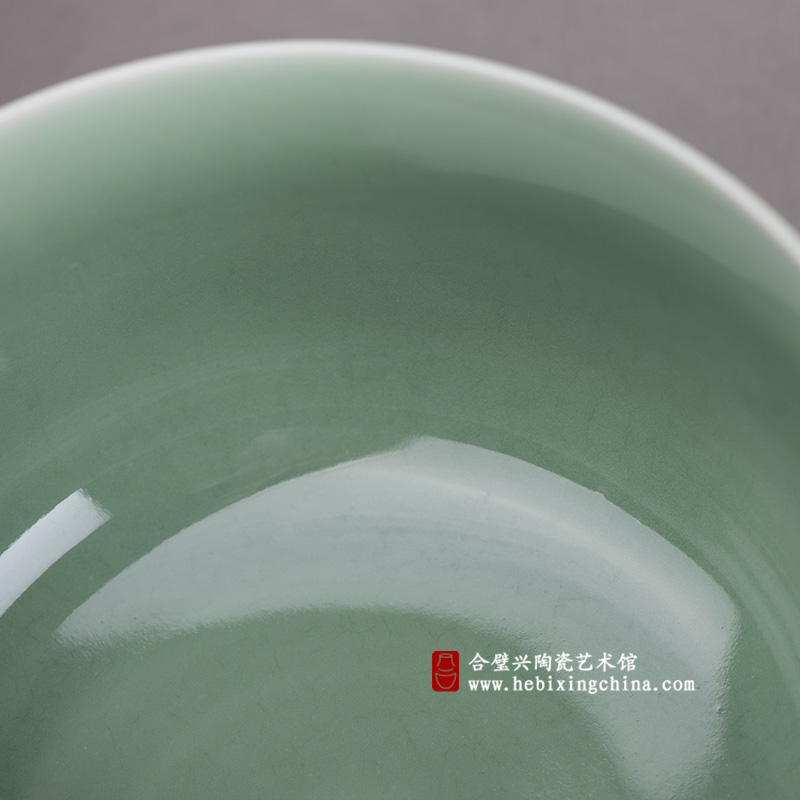 毛正聪老师潜心研究的多次施釉技法完美的再现了古人口中青瓷“似玉非玉”的优美质感,纯正的梅子青釉色让我们能从中品味出几分千年前宋人的喜悦。
