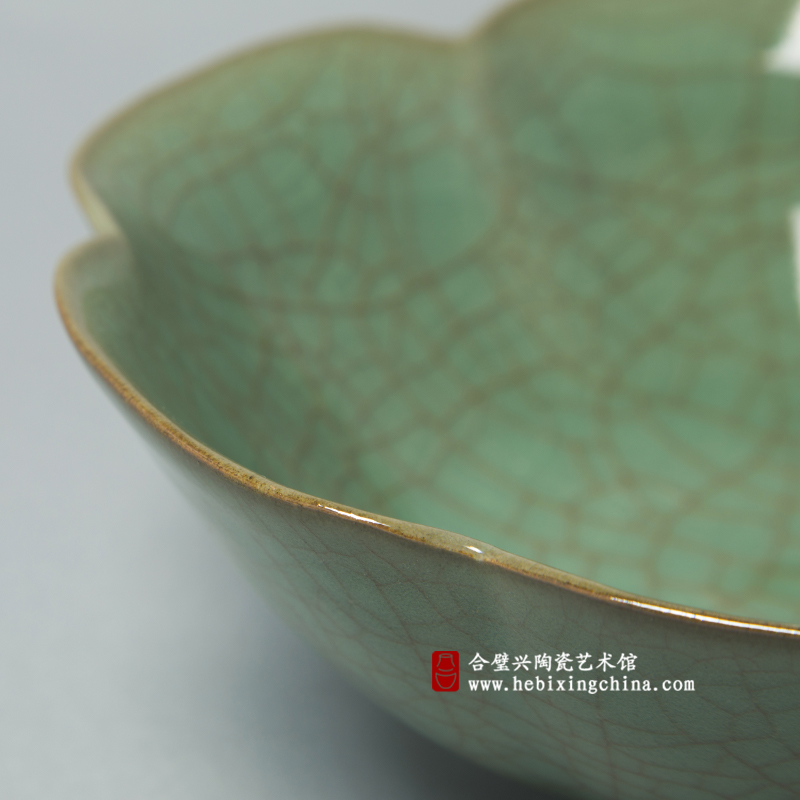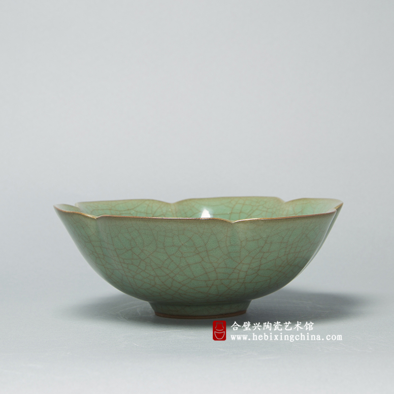 舒展自然的开片在荷叶碗的表面漫延,像是阳光织就的一张密网,蕴含着无穷生命力量的金色光芒自纹路中透出,坚定而温暖,简练的形状因为这缕缕金色而有了生命的温度。