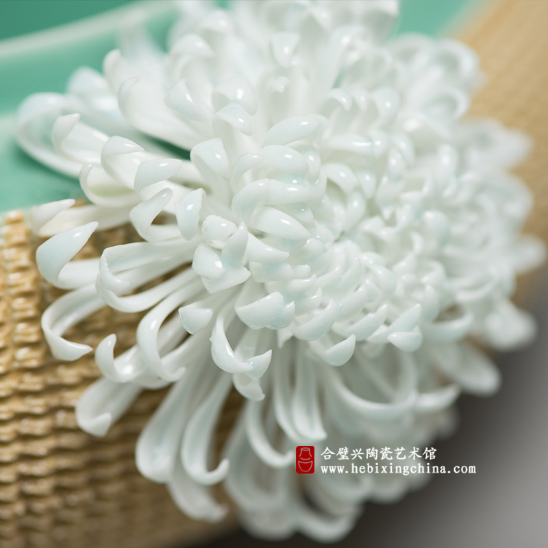 菊花娴静而精致,若不是微凉的触感绝不相信那是瓷泥化成,也正是这份精巧让靖节先生的旷达带上了几许来自龙泉的静雅与温柔。