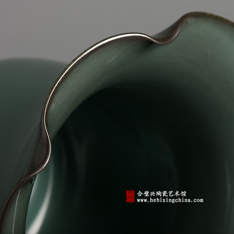 温润的青釉在醇厚的铁胎上呈现出别样典雅的色彩,搭配饱满沉毅的线条,就有了一种柔和中带着端庄的典雅气质。