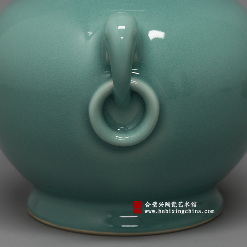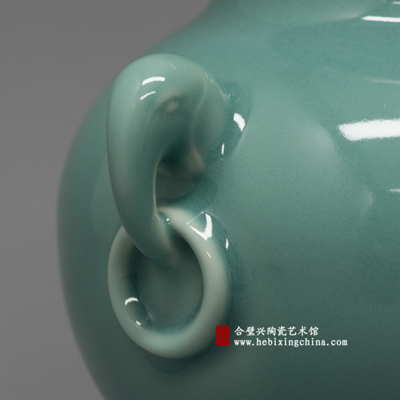 毛丹阳老师用梅子青釉平和温润之色与象耳瓶古朴吉祥之形的完美组合演绎出“太平有象”的吉祥寓意,可谓匠心独具。