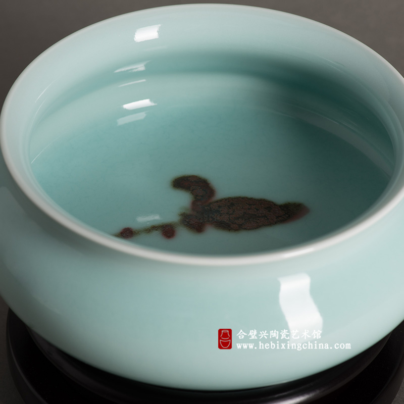 2014年 向故宫博物院捐赠作品《青釉剔花枫叶纹洗》。