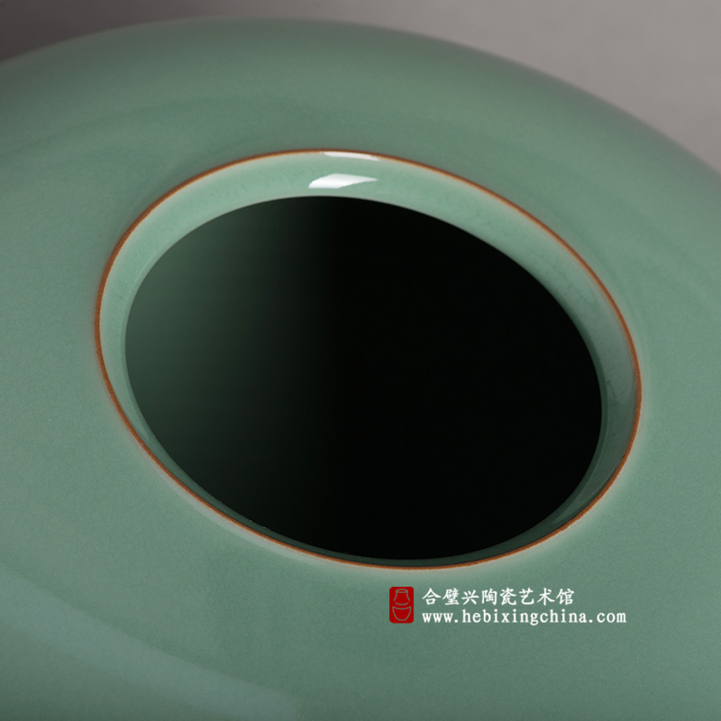 陈爱明老师深谙“简其形而用其色”的精髓,以极简的造型为釉色的表达创造巨大的空间,宽阔平整的曲面把梅子青釉色与质的美感发挥到了极致,用极简的纯美引发我们心灵深处的慨叹。