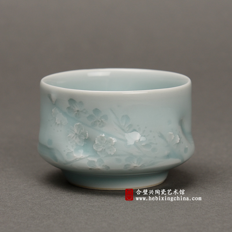 粉青釉如同冬日里清冽的北风,催来了满树的白梅,独特的刀法刻出了梅花的不凡风骨与如玉品格。