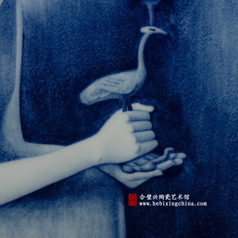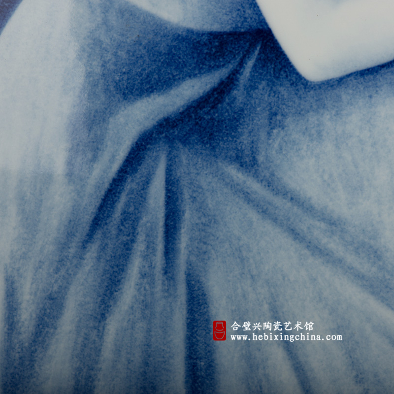 传统的青花与西洋绘画技法就这样在作者的手中交融出了一幅别致的肖像画。