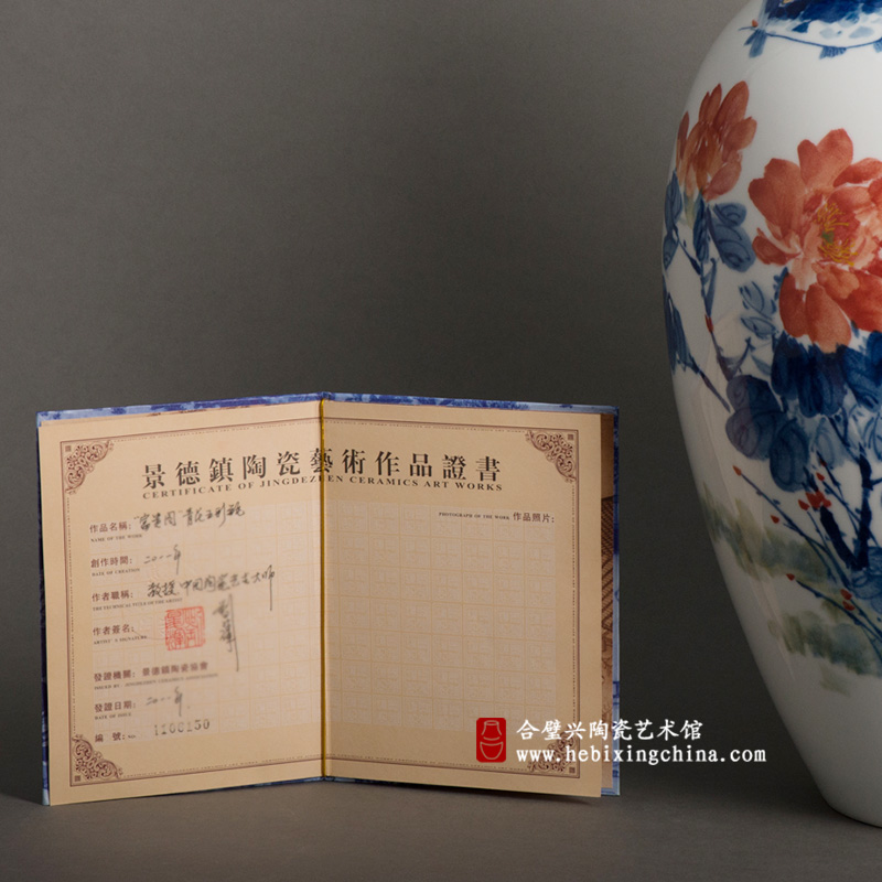牡丹与鳜鱼都是美好富贵的象征,作者以大气潇洒的写意笔法将牡丹、鳜鱼的形象描绘的形神兼备,既有现代绘画的明朗风格也不失传统青花的韵味。