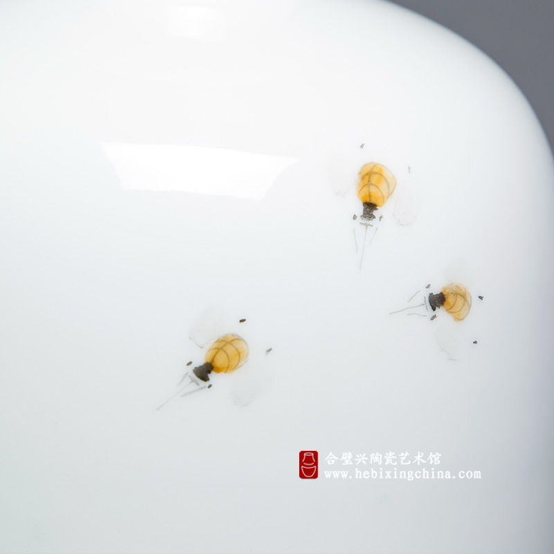 在这件作品中曾亚林将景德镇白瓷的瓷质之美与陶瓷绘画的工艺之美及装饰之美完美的融合在一处,展现出陶瓷艺术和谐自然的独特韵味。