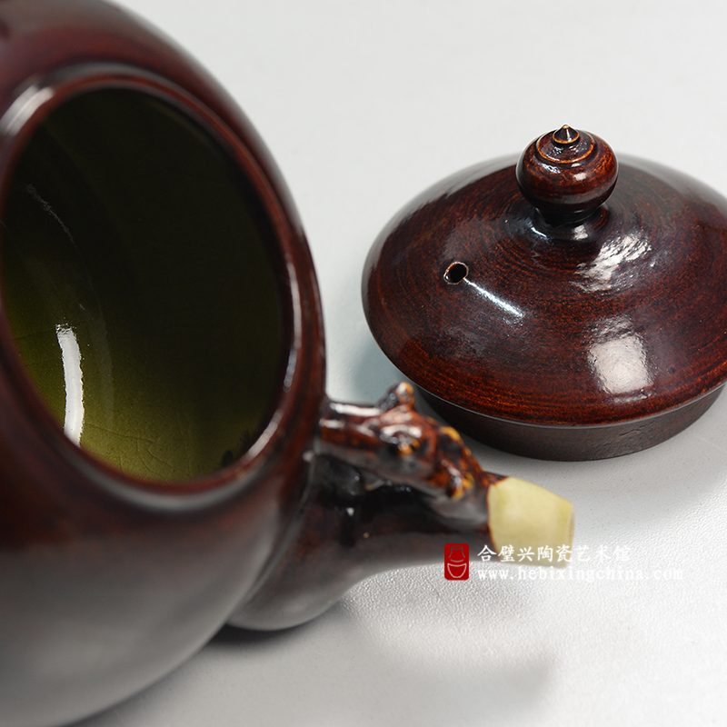 细节部分处理的十分巧妙,壶柄圆润,持握舒适。壶嘴初塑造出形似树干的肌理,似是岁月的流痕,于细微之处道出人生的厚重之感。