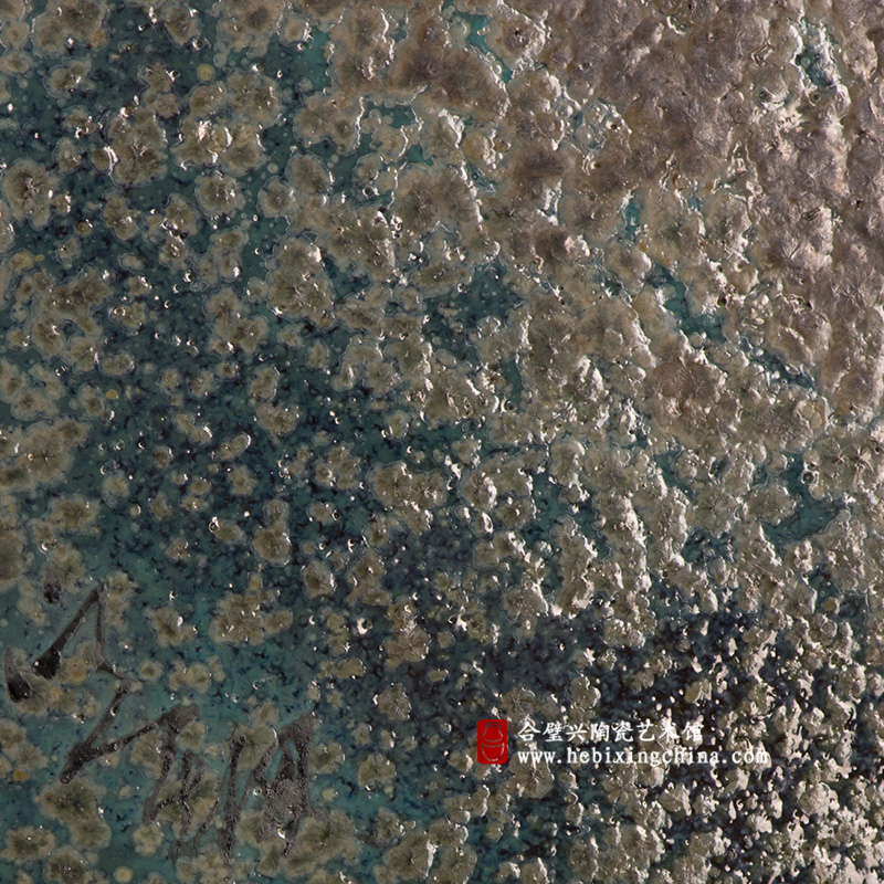 大面积的颜色釉中蕴含着窑变产生的丰富肌描,如国画中的泼墨手法般在浓淡变化中满含动感。