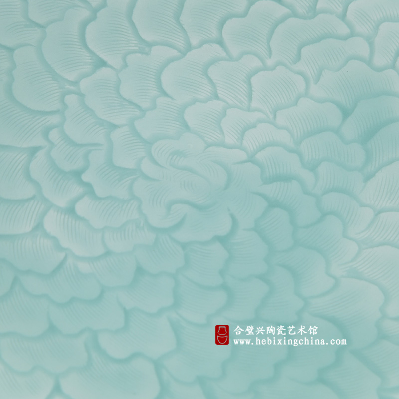 个性的刻花在硕大的体量中层层晕开似乎化作了海中的青色浪花迎着清晨的阳光一层层、一片片荡漾出清新的气息