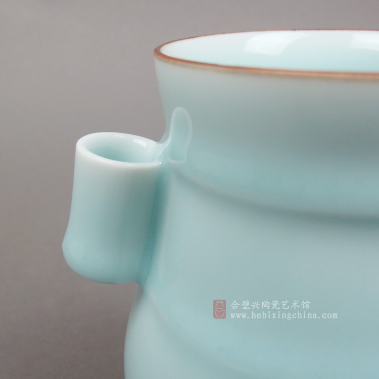 徐定昌1973年始从艺于龙泉上垟瓷厂,1996年建立龙泉市振昌瓷厂,40多年来孜孜追求青瓷艺术,不断吸聚传统精髓和探索现代艺术理念,集古今优异为一体,艺术创作精益求精,尤其擅长于全手工拉坯成型工艺。作品以薄胎厚釉的南宋官窑风格为主打,造型简洁大气、古朴典雅。多层施釉使器物釉色丰满,温润如玉。精湛的修坯工艺更使作品显得玲珑乖巧,令人百赏不厌。