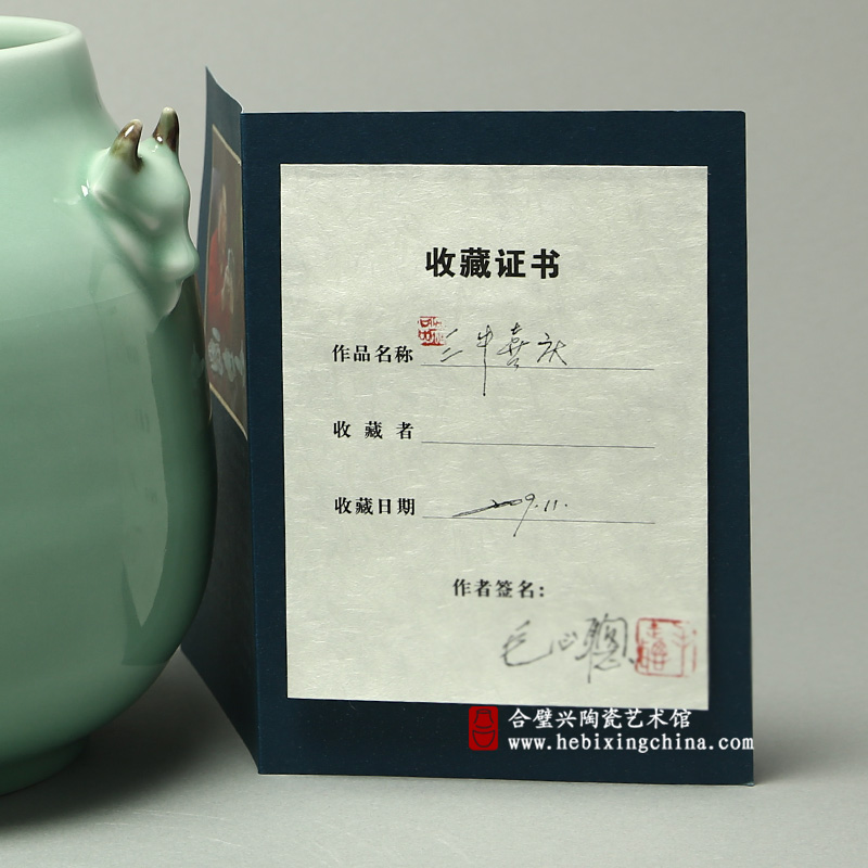2009年 作品《梅子青双耳炉》被钓鱼台国宾馆收藏;