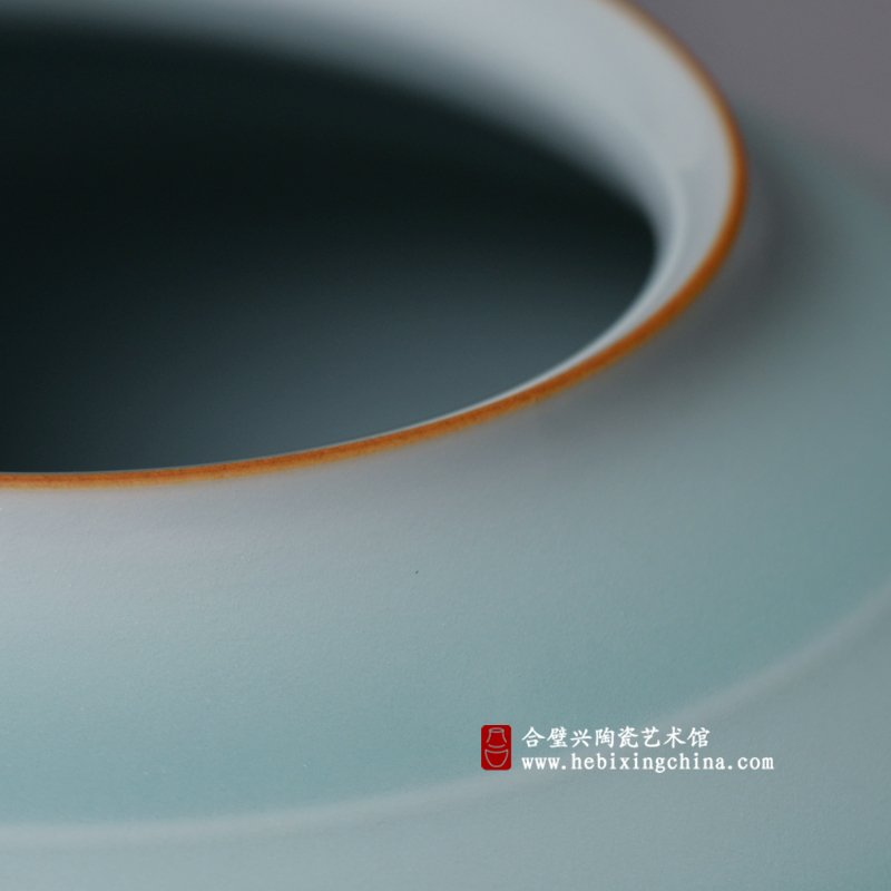 一色的粉青釉流动在罐体表面,在旋纹制造的凹凸中生出微微的深浅变化,与光影中的旋纹自然的结合在一起,于是整件作品就在微妙的律动中成为了一段优美又轻快的乐曲缓缓的流入了你的心间......