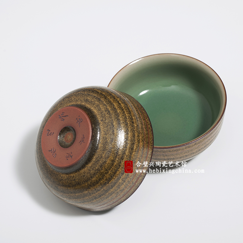 以“璞”巧换“朴”,“璞素”二字诠释的是茶叶末釉与梅子青釉在釉色鲜明对比之下潜藏的内在特质,茶叶末釉以滋润,鲜明,活泼,三者为贵矣,娇而不俗,动中有静;梅子青釉与碧玉相若,素雅、细腻,矜而不争,静中有动。两者均以自然为美,以朴实为美,巧妙的融合使《璞素》杯既有浑然天成的璞玉之质,又有反璞归真的素简心性。茶事之美贵素朴,素朴贵真,“真”在内者,美必显于外,方可动茶、动人、动心。