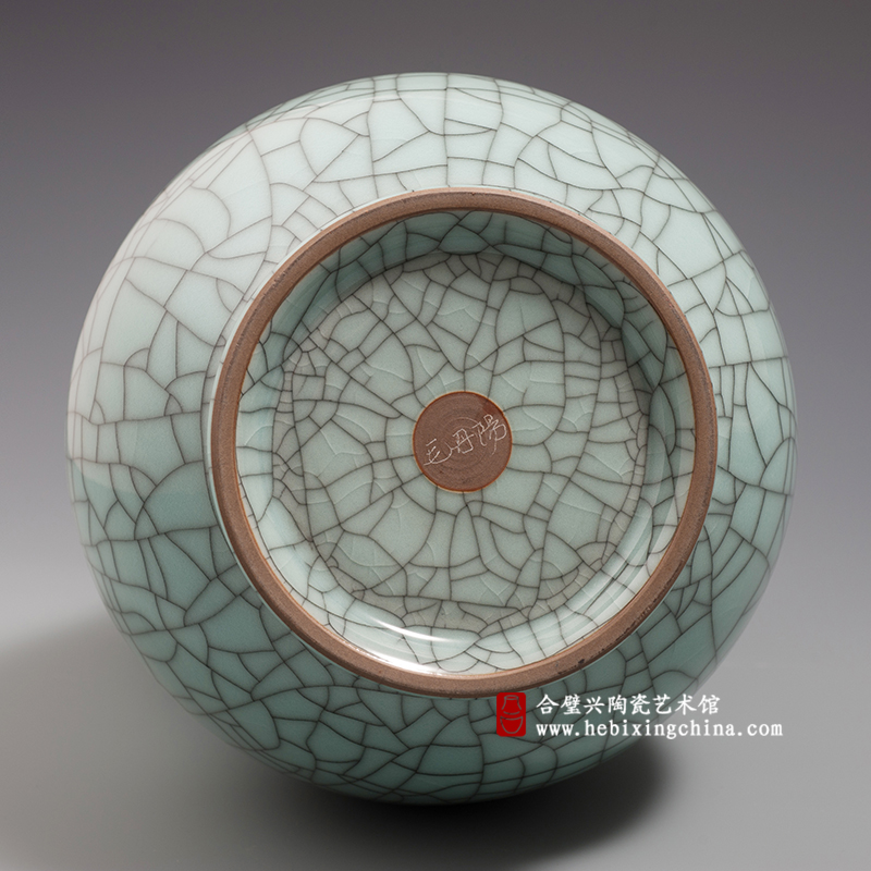 作品采用哥弟窑结合的手法纯手工制作而成。