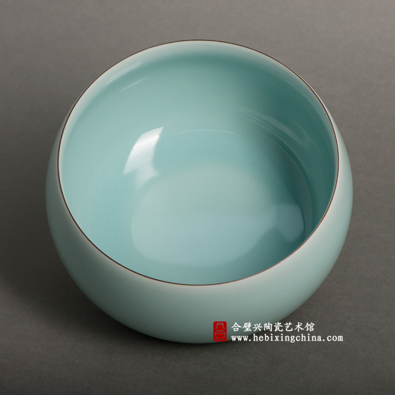 以紫金土细细的勾勒出口沿,打破了一色的清冷,碧青与深紫的搭配似水与土的交融,不着痕迹中蕴含着自然的深意。