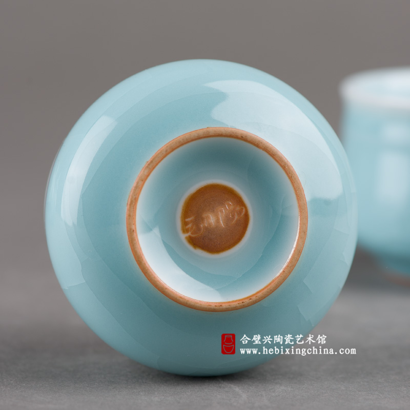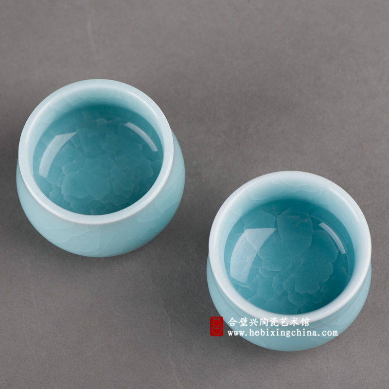 在两只小巧的茶杯上,同样清朗的釉色却因为独特的冰裂纹而呈现出清冽的味道,如同是冰川中心处那一片最纯净的冰蓝,带着让人神驰的美,给人送去屡屡清凉。