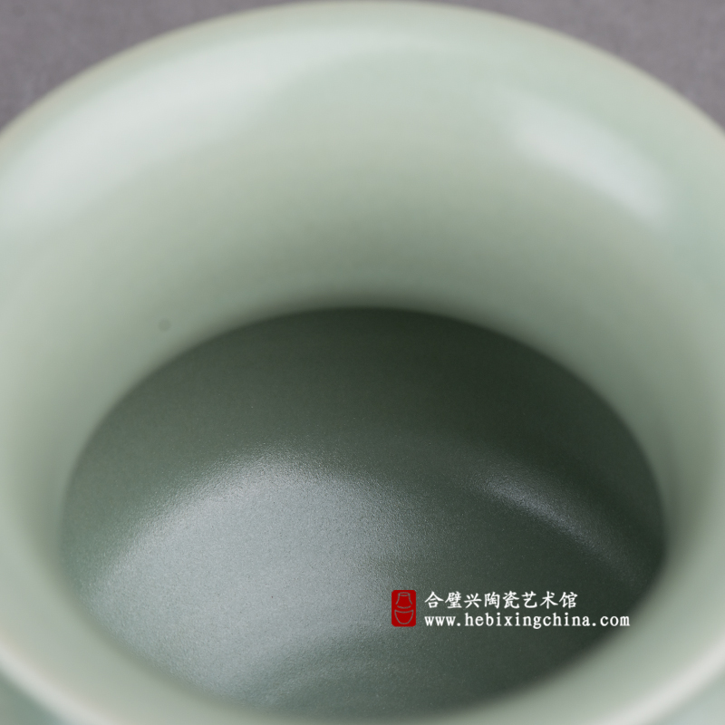 用梅子青釉的清雅温润掩藏了瓷器的火气,让作品愈加清朗出尘。出身晋代的渣斗在当今瓷人的手中变得更加优美而匀称。