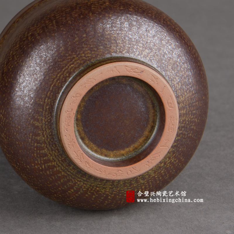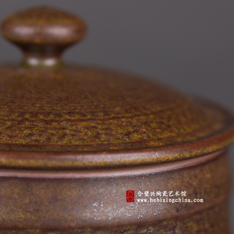 敦实圆润的造型,带着泥土气息的质朴釉色和活泼的跳刀纹,这件作品仿佛是一个可爱的泥娃娃,身上带着满满的泥土和阳光的味道,憨直可爱的让人忍不住把他捧在手心。