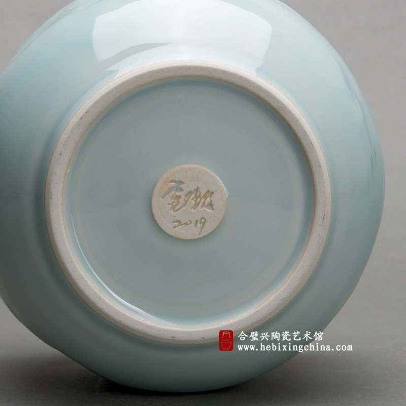 这一次卢伟孙老师用明亮的粉青釉和柔和的线条把作品变成了一幅生动明快的水彩画。
