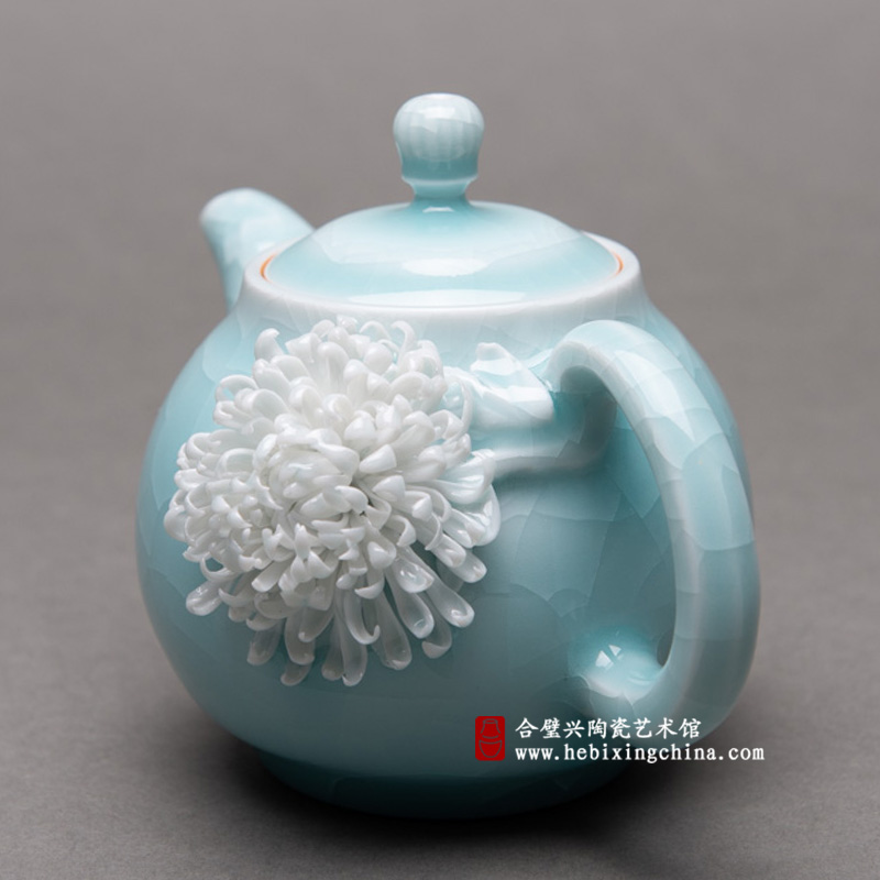 远远望去,圆润而俊秀的小壶似乎化作了菊花宴上咏菊的探春,长挑身材顾盼神飞的美人,手执晶莹的白菊,倾身写下“长安公子因花癖,彭泽先生是酒狂”的《簪菊》。