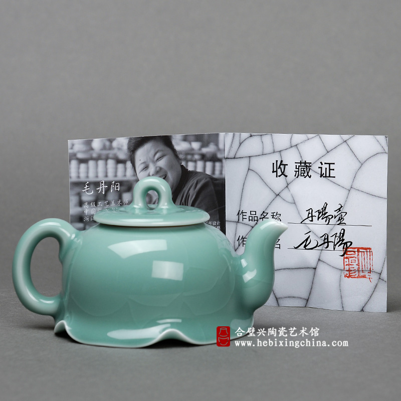 毛丹阳系青瓷名家毛松林大师长女,其作品极富女性内涵韵味,注重细节,构思奇妙,手工细腻,既有传统文人气又富有现代装饰感,个性鲜明,生活气息十足,带给人们艺术和美的享受。毛丹阳把雕塑技巧充分运用到青瓷装饰上,那些含蓄、细腻、富于变化的线条和那些生动鲜活、舒展饱满、刚柔兼备的装饰图案,让这个沉静清雅的青瓷世界多了许多动感。作品多次参加全国工艺美术精品展览并获奖,深受喜爱,被国内外馆藏机构和陶瓷爱好者广为收藏。