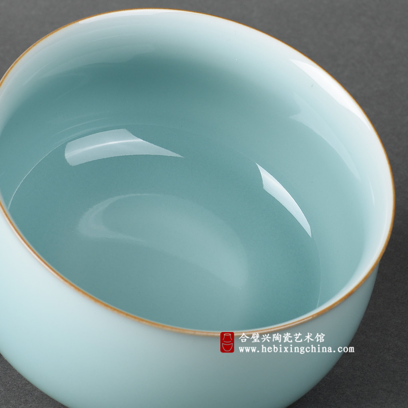 口沿处日晕般的黄色出筋和底足处月华般的纯净露胎在青色的衬托下形成了极具哲学况味的阴阳交融。
