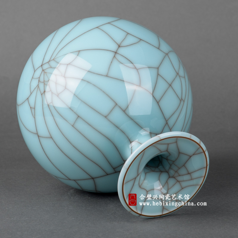 赭色的开片纹路似有魔力般,把渐融的冰面,清透的春水,美丽的碧色牡丹都连缀在这圆润的瓷瓶上,共同组成了一片春和景明的好春光。