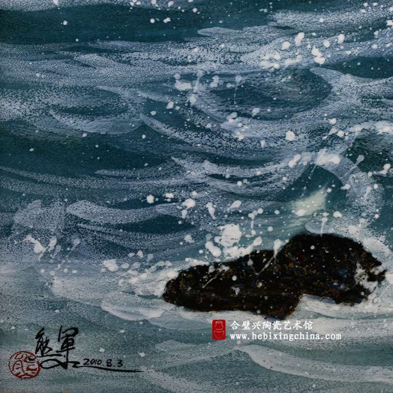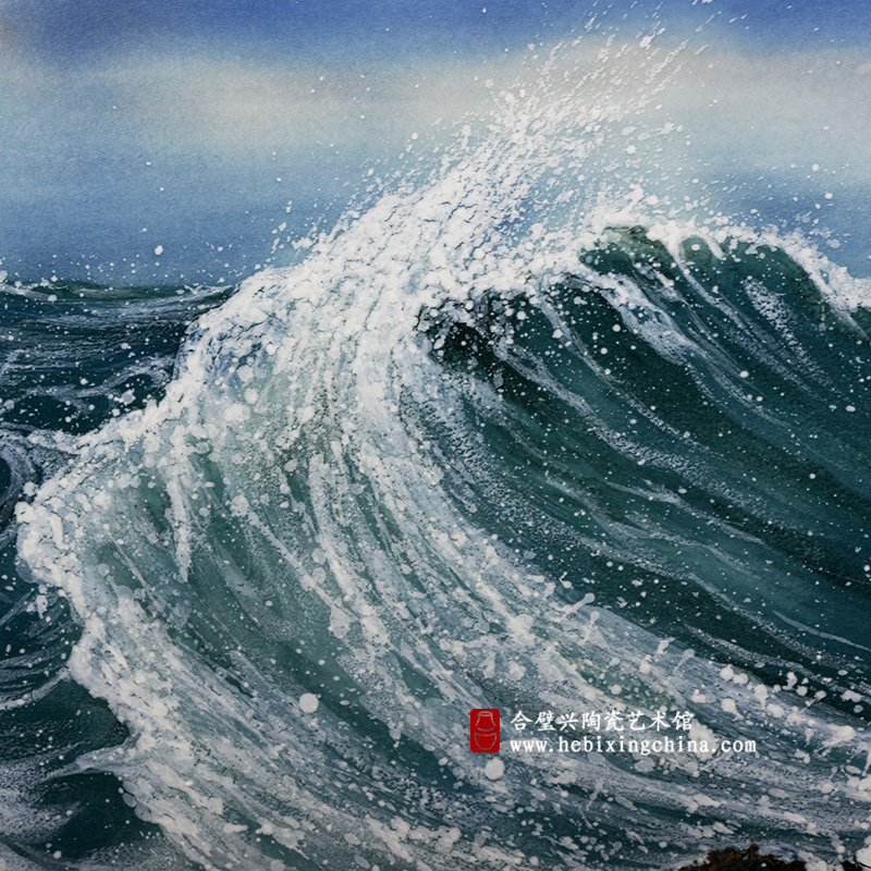 站在这件作品前总是能让人产生一种正在欣赏现代油画的错觉。伸出手去,下一秒,满手细致微凉的陶瓷触感,营造出一种非常奇妙的体验,让人一边震撼于自然的力量,一便叹服于陶瓷艺术的丰富表现力。