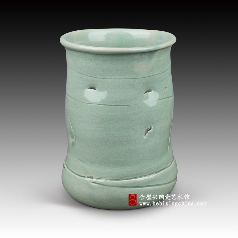 余勐老师别具匠心的将青花,釉上彩与颜色釉三种装饰手法有机的叠加在一起,以青花的清朗,釉上彩的鲜亮,搭配上高温颜色釉的肌理将佳人轻吹竹笛。