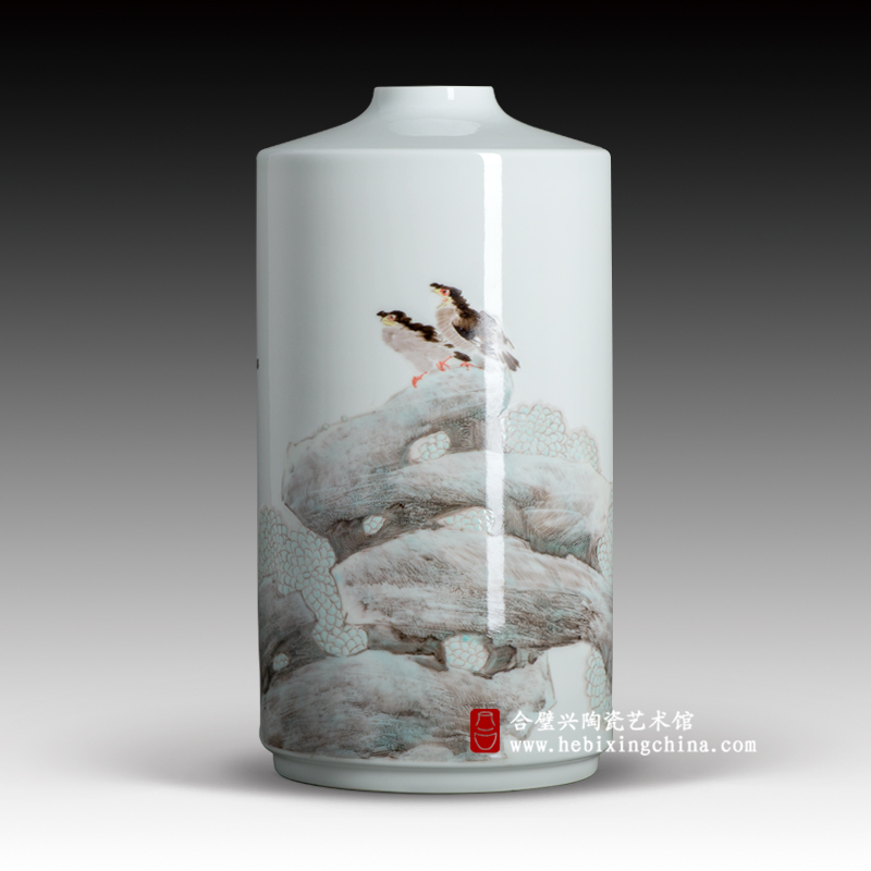 笛声清悦,彩蝶纷飞,鸟雀环绕,佳卉缤纷的诗意画面留驻在瓷瓶之上,莹白的瓷,唯美的画,精彩的装饰手法让作品情致盎然又极富装饰效果。
