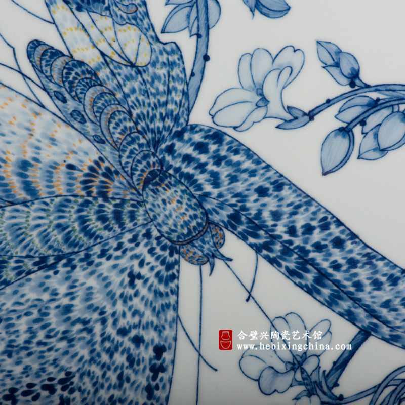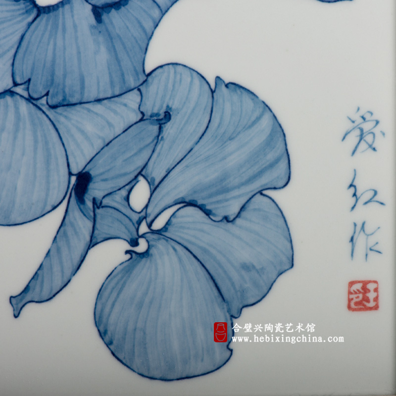 王爱红教授独具匠心的把西洋画风格的表现手法与景德镇传统陶瓷中颇具代表性的青花釉料融合,再加上极具个人风格的构图和细腻的笔法,成就了作品新颖独特的视觉美感。用简单的色彩搭配成功的营造出清透而诗意的情境。