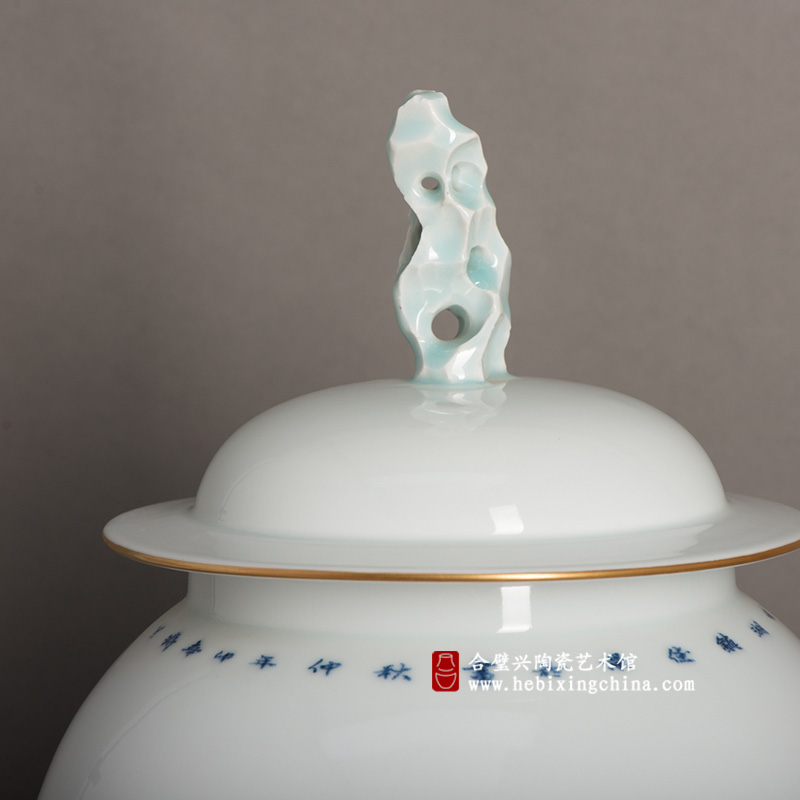 盖罐造型中隐隐带着一些将军罐的韵味,敦厚浑圆的罐腹为观者营造出饱满的体量感,也为创作者提供了广阔的创作空间。