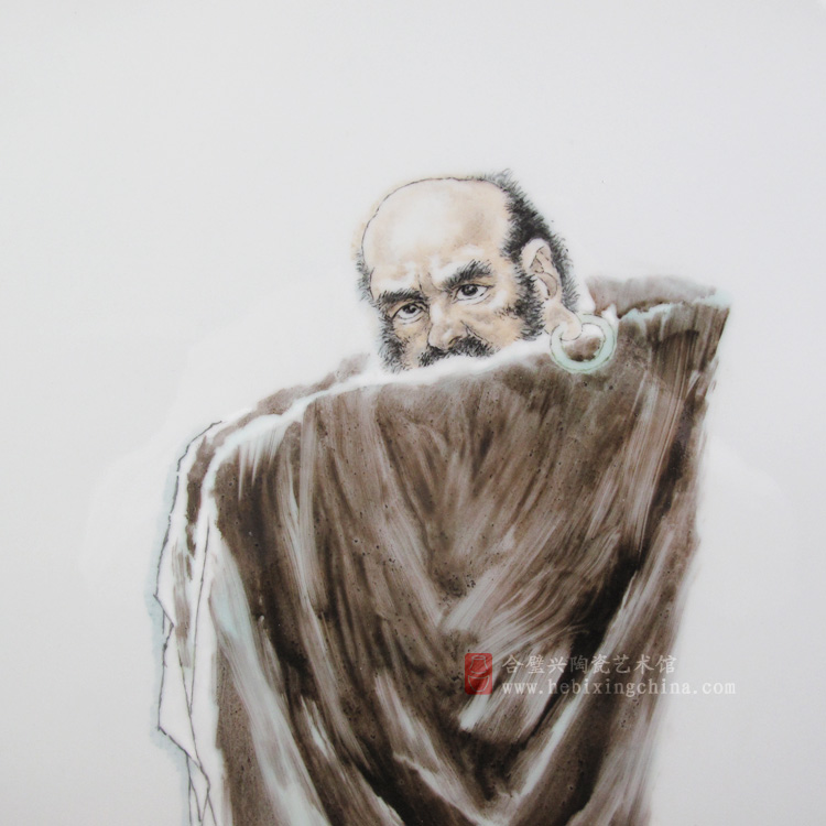 那是一双智者的眼睛,其中包含了太多的内容--有佛学大师的睿智豁达,也有异域贵族的传奇神秘......皴擦笔法中达摩的一袭褐袍随风而动,我们仿佛能从达摩脚下的浪花和微微扬起的袍角中感受到迎面而来的江风。