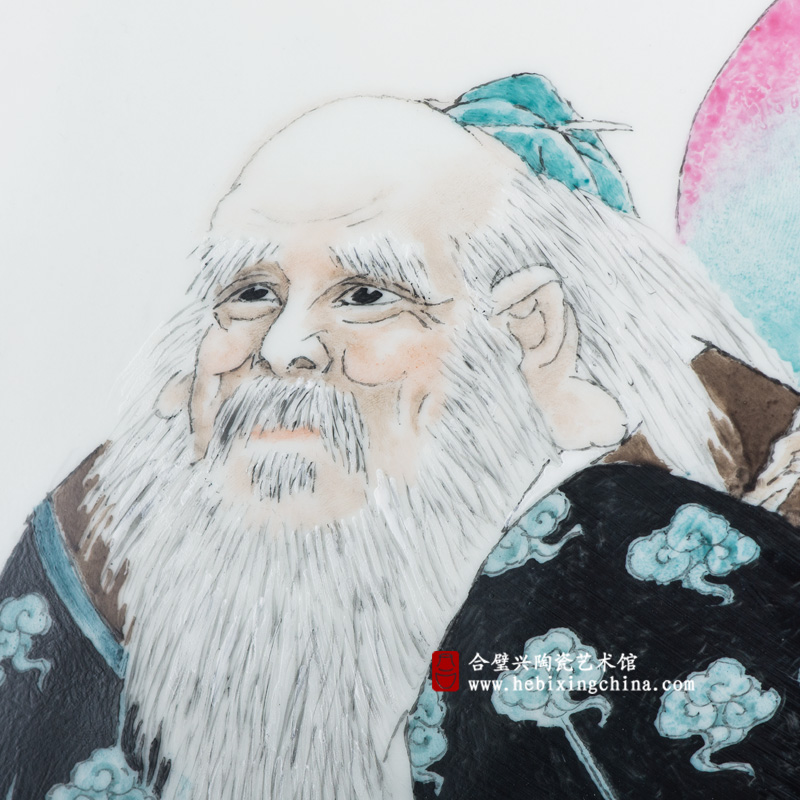 细腻温和的粉彩仿佛是为画面镀上了一层温暖的光泽,衬托出长者睿智的眼神和飘逸的须发。