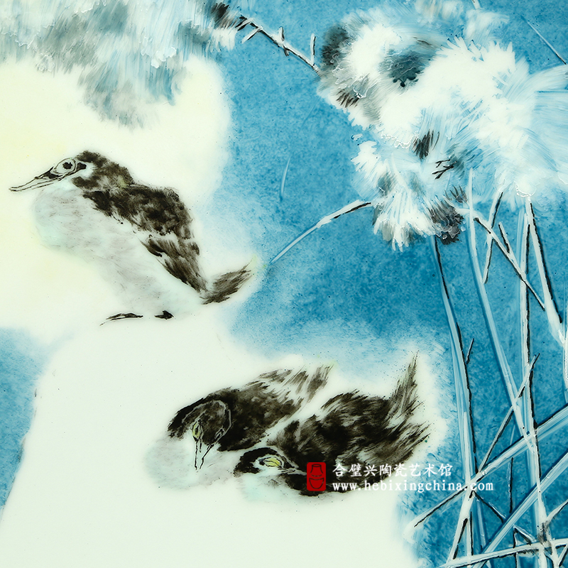 笔法皴擦间,将野雁羽毛与蓬松的芦花描绘的质感十足,仿佛是有微凉的风穿过苇丛,吹乱了野雁的羽毛,也吹动了芦花,给苇塘带来一种无序的美感。
