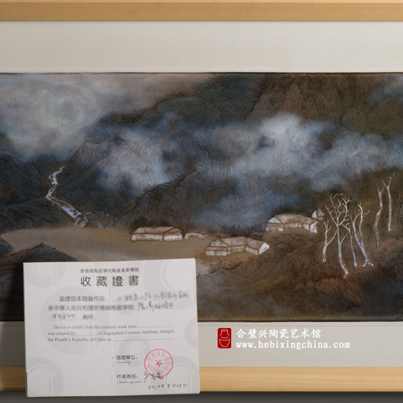 2013年,中国嘉德春拍,《云山雾绕》综合装饰瓷板,成交价92000元