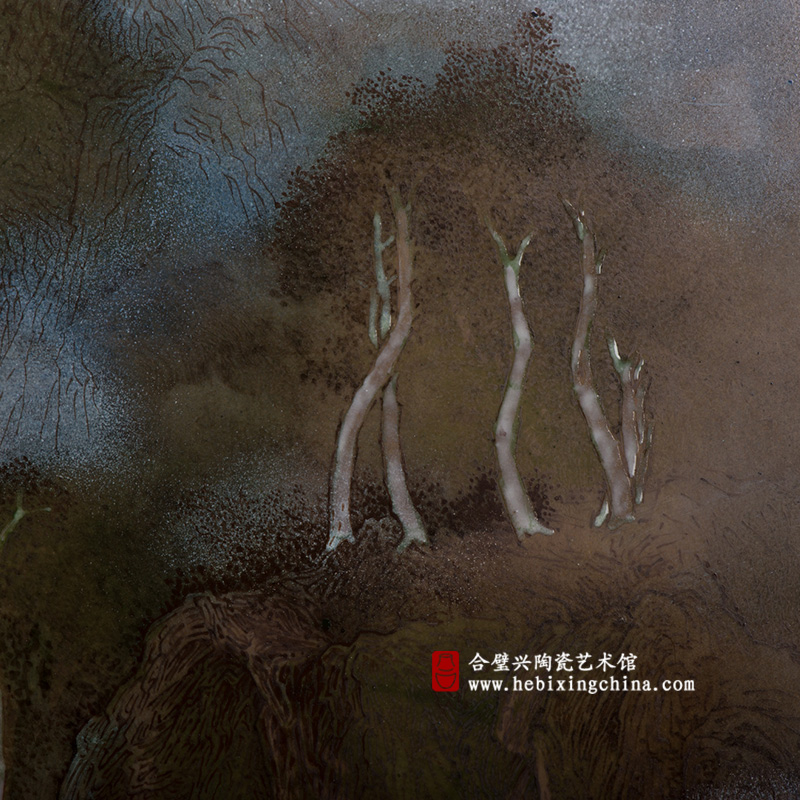 詹伟教授用极具个人风格的装饰手法将夏日山居图景描绘的古韵悠然,用现代陶瓷装饰技法描摹古典山水画情韵,可说是一种非常有趣的尝试。